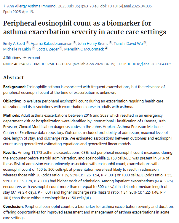 急性増悪時における末梢好酸球数は喘息増悪の重症度評価に有用なバイオマーカーである